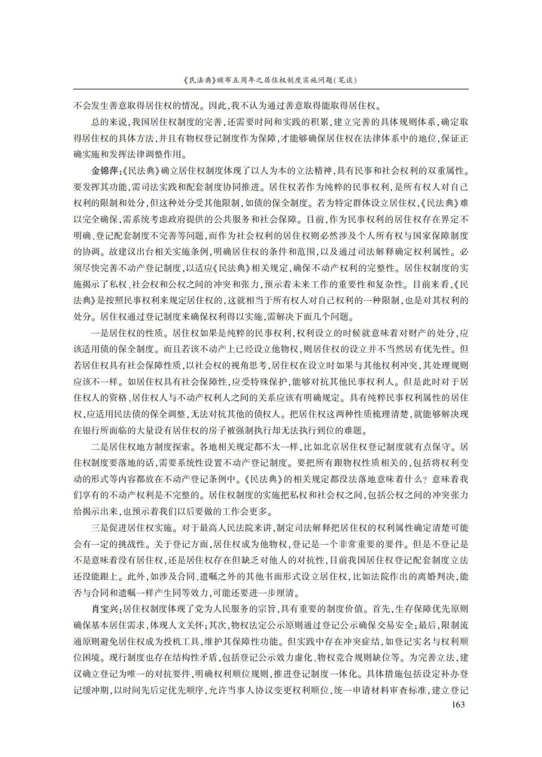 民法典颁布五周年之居住权制度实施问题(笔谈)
