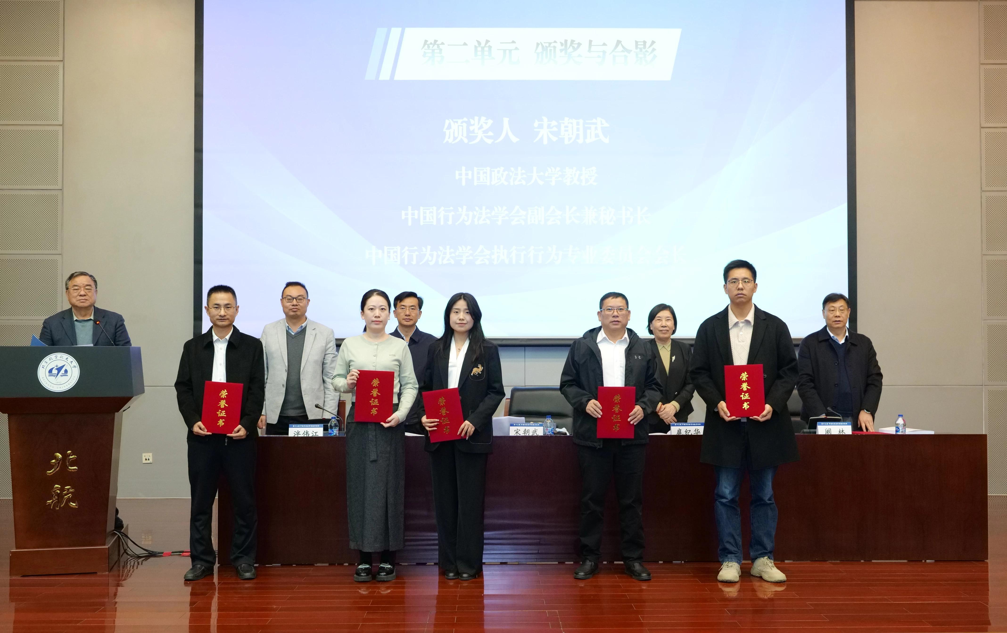 论文颁奖环节,国家法官学院教授、中国行为法学会执行行为专业委员会副会长金俊银介绍论文评选情况:自2025年4月10日发布征稿启事至8月31日,组委会共收到全国各级法院广大法官、法学院校师生和社会有关人士提交的参评论文482篇。经“双向匿名评审、原创性检测”等严格流程,最终评选出一等奖论文6篇、二等奖论文45篇、三等奖论文47篇、优秀奖论文70篇。北京市高级人民法院、上海市高级人民法院、江苏省高级人民法院和湖南省高级人民法院荣获组织工作先进奖。宋朝武宣布名单后,获奖代表上台领奖。