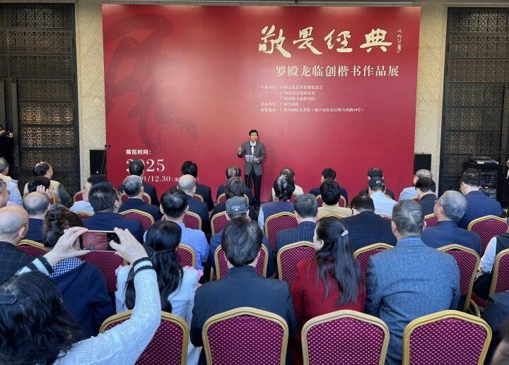 12月20日,“敬畏经典——罗殿龙临创楷书作品展”在广西书画院美术馆举办。本次展览由中国文化艺术发展促进会、广西法治文化研究会、广西民族文化研究院主办,广西书法院承办。开幕式上,广西壮族自治区党委原常委、宣传部长黄道伟,中国文联党组原副书记、副主席覃志刚先后致辞。知名书法家、广西壮族自治区高级人民法院原院长罗殿龙致答谢辞。广西壮族自治区党委原书记曹伯纯宣布展览开幕。开幕式由广西书法院院长闭理书主持。