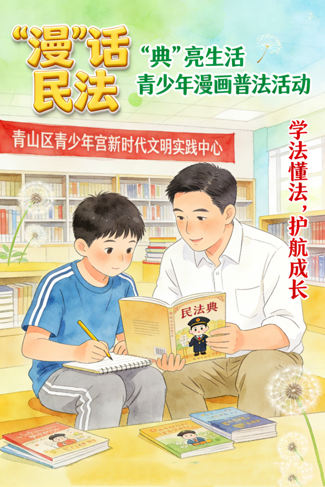 为使《中华人民共和国民法典》真正走入青少年心中,激发学法兴趣,在寓教于乐中提升其法治素养。1月17日上午,湖北省武汉市青山区青少年宫、红钢城街道三街社区联合开展“‘漫’话民法,‘典’亮生活”青少年漫画普法活动。作为“社会生活的百科全书”,民法典贯穿人的一生,更是青少年成长为知法、懂法、守法好孩子的重要指引。