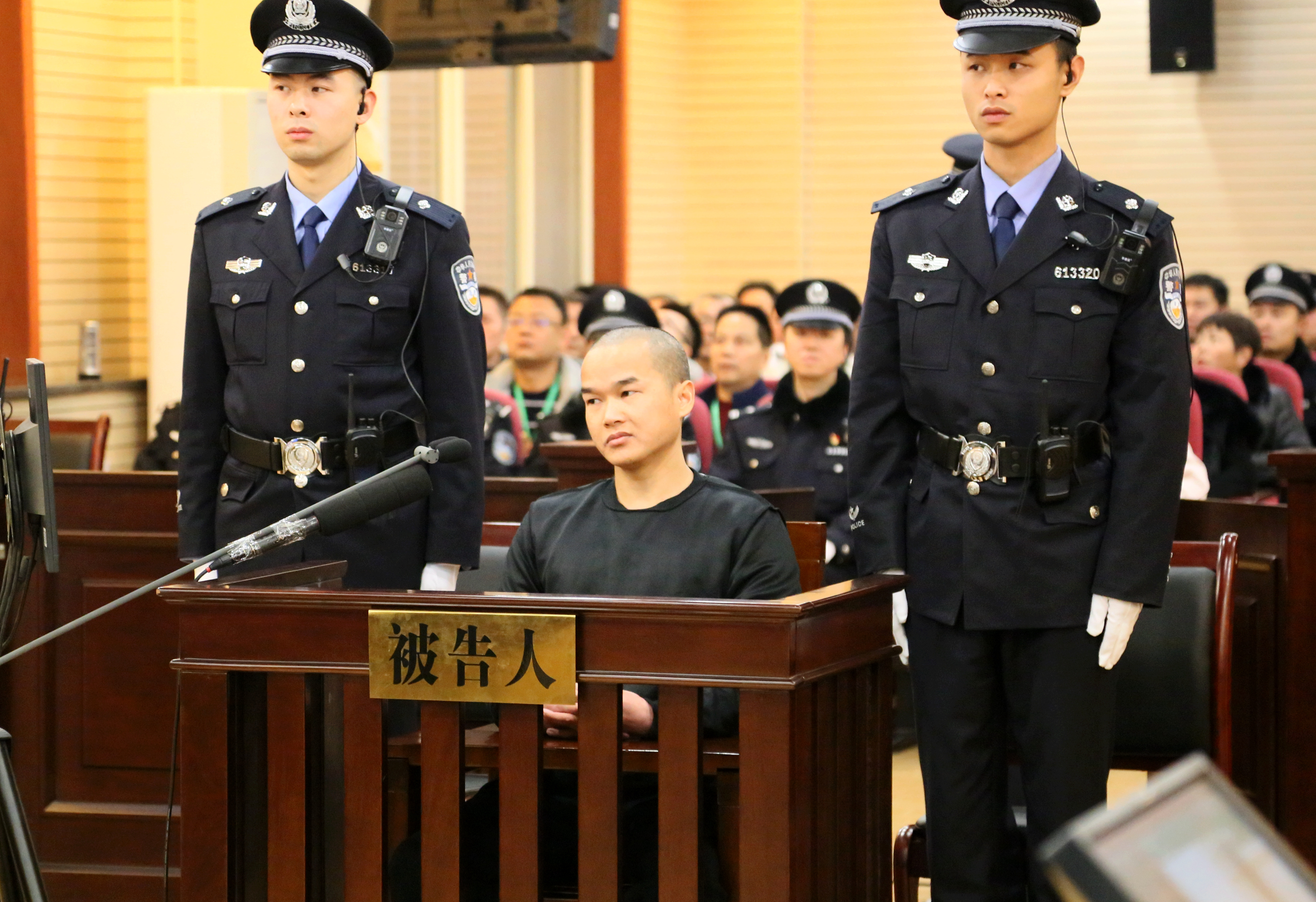 1月8日,被告人张扣扣(前)在汉中市中级人民法院庭审现场。