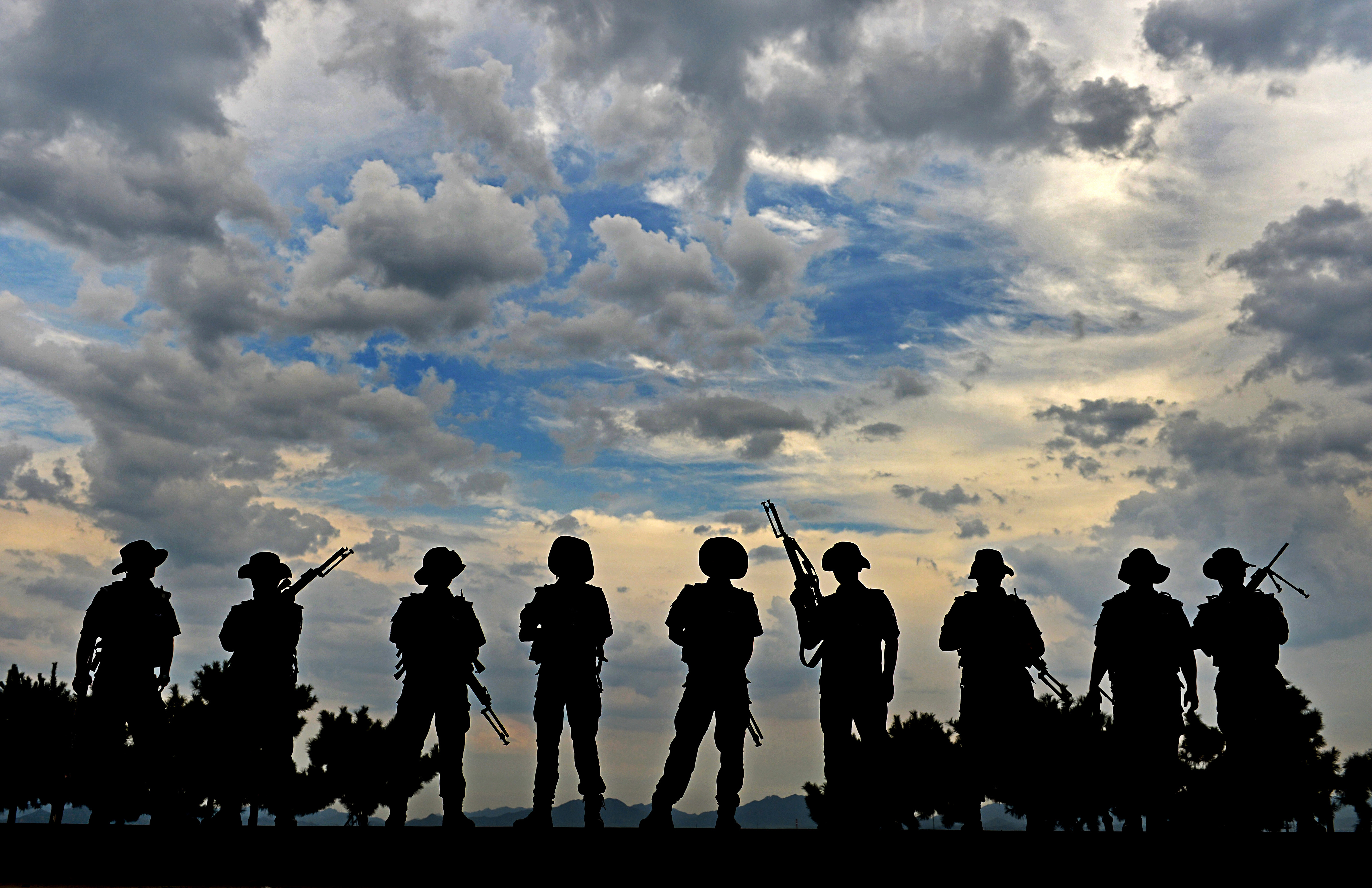 2014年8月5日,北京市公安局蓝剑突击队员射击训练结束后返回。