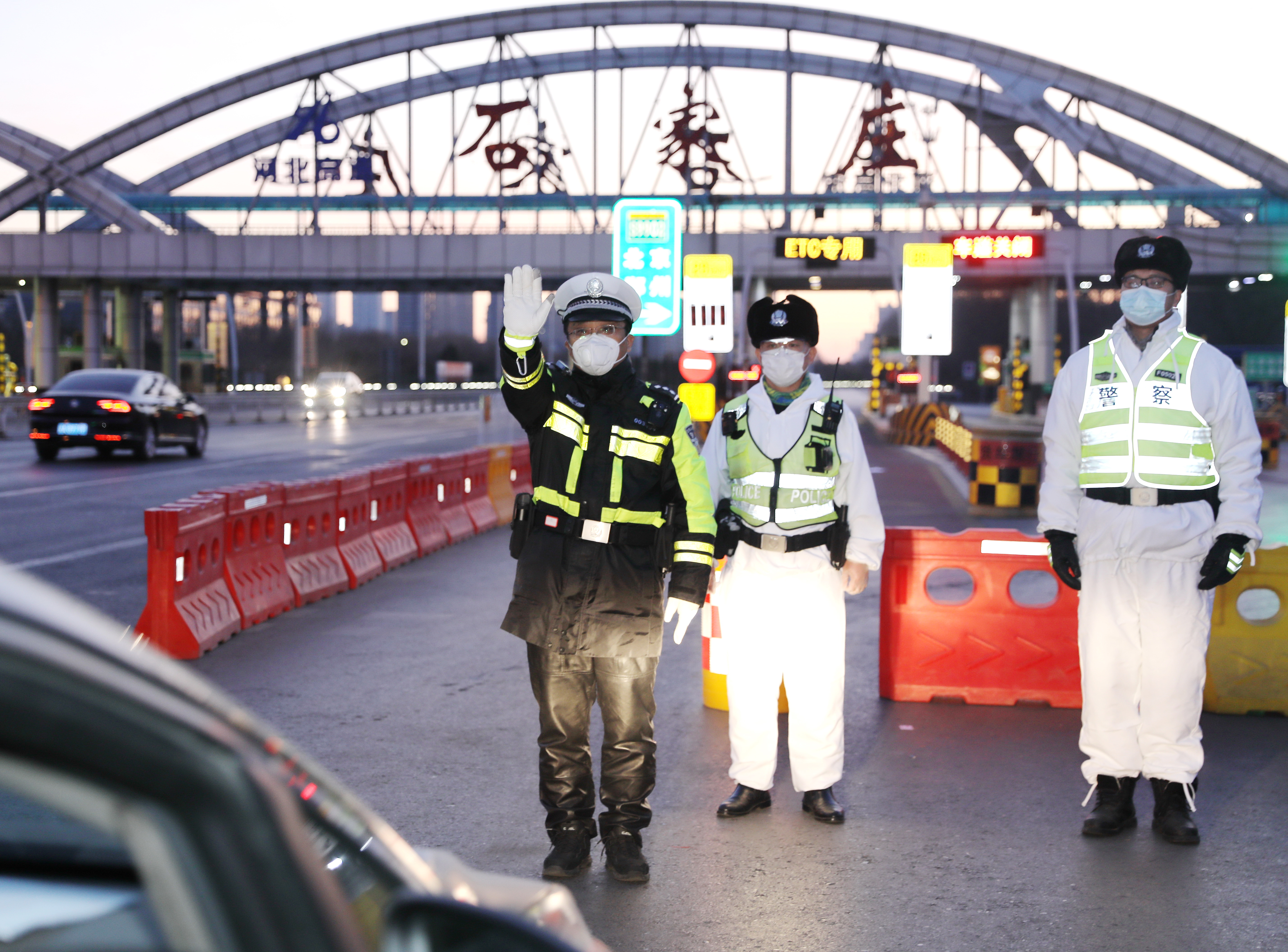 1月10日,石家庄市公安局裕华东警务站民警在新元高速石家庄市裕华路高速口执勤。