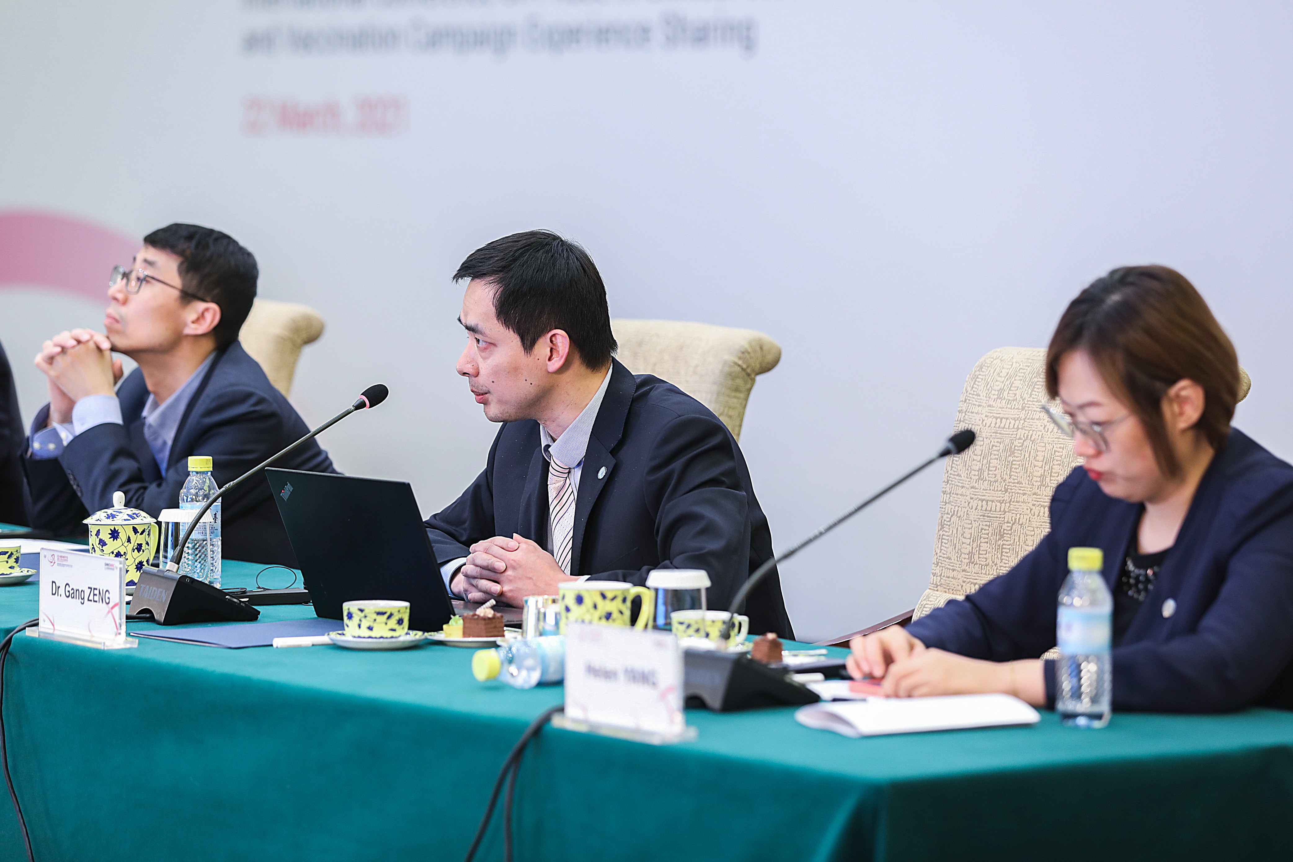 3月22日,来自科兴控股生物技术有限公司的曾刚博士(中)在会议上发言并公布新冠病毒灭活疫苗克尔来福的未成年组临床研究数据。