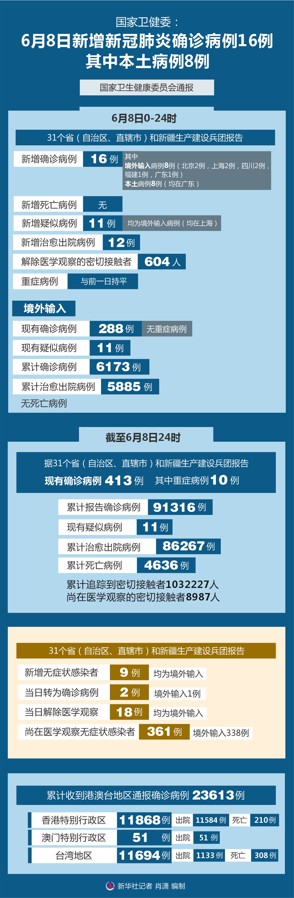 6月8日新增新冠肺炎确诊病例16例 其中本土病例8例