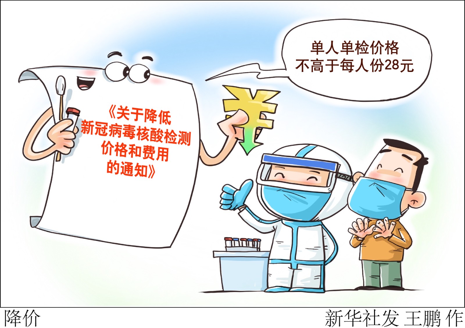 为适应新冠病毒肺炎疫情防控的形势变化,降低大规模核酸筛查和高频率检测的成本,国家医疗保障局办公室、国务院应对新型冠状病毒肺炎疫情联防联控机制医疗救治组4月2日联合印发《关于降低新冠病毒核酸检测价格和费用的通知》,明确单人单检降至不高于每人份28元、多人混检统一降至每人份不高于8元。