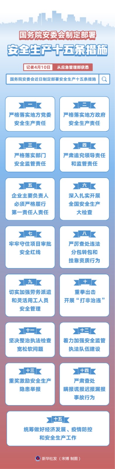 记者4月10日从应急管理部获悉,国务院安委会近日制定部署安全生产十五条措施,其中明确要求深入扎实开展全国安全生产大检查,对排查整治不认真,未列入清单、经查实属于重大隐患的,要当作事故对待,引发事故的要从严从重追究责任。