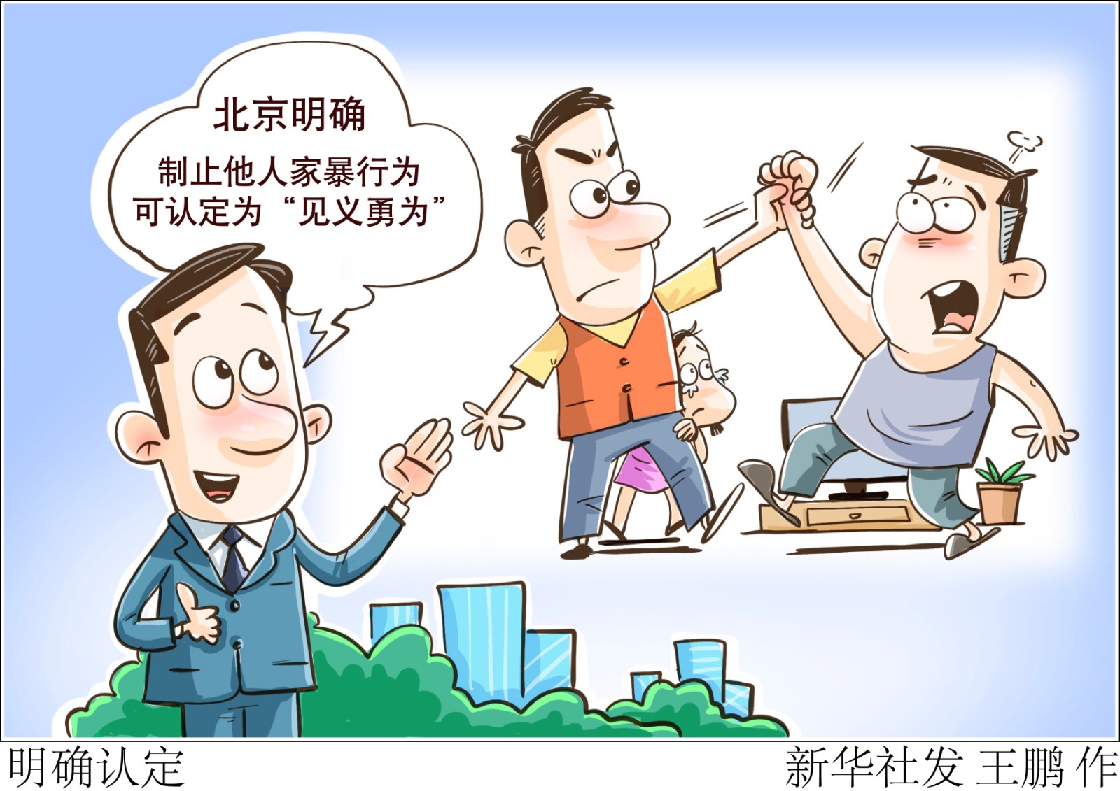 在北京市委社会工委市民政局6月10日举行的新闻发布会上,北京市委社会工委市民政局二级巡视员张青之介绍,北京正式启动第四届北京市见义勇为宣传月暨第十三届首都见义勇为好市民社会化评选活动。制止他人的家暴行为等情形,符合确认条件的,可以认定为“见义勇为”。