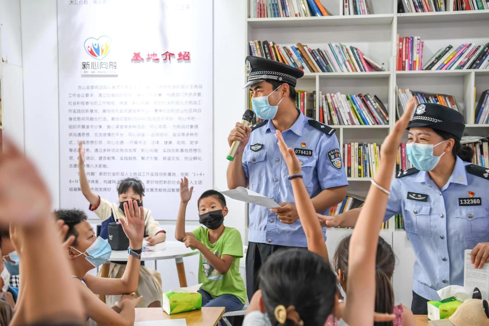 7月5日,安徽省含山县公安局环峰派出所组织民警来到辖区留守儿童之家,开展以“关爱留守儿童 远离有害出版物”为主题的宣传教育活动,民警以互动问答的方式让孩子们了解盗版书、有害口袋书、有害卡通画册、不良游戏的危害,引导他们养成良好的阅读习惯,为青少年健康成长营造文明和谐、绿色清朗的文化环境。