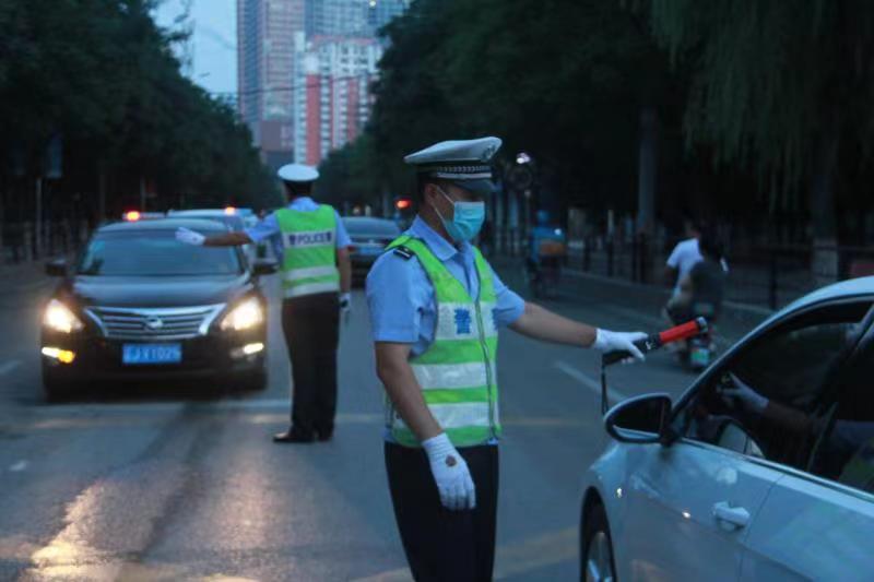 7月5日晚,夏季整治百日行动中,辽宁省阜新市公安局交警支队细河大队在街头设卡严查酒驾,遏制交通事故的发生。