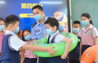 暑期临近,浙江省台州市三门县公安局珠岙派出所防溺水宣传小分队深入校园开展暑假防溺水安全教育宣传活动。民警通过播放溺水事故、溺水自救等视频,演示救援和心肺复苏知识,提高学生安全防范意识和自救能力。 图为7月5日,民警向学生进行防溺水教育。 法治日报通讯员 林利军 摄