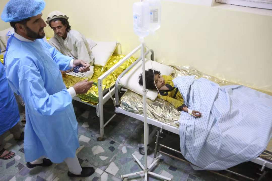 6月22日,一名地震中受伤的小女孩在阿富汗帕克提卡省医院里接受救治。