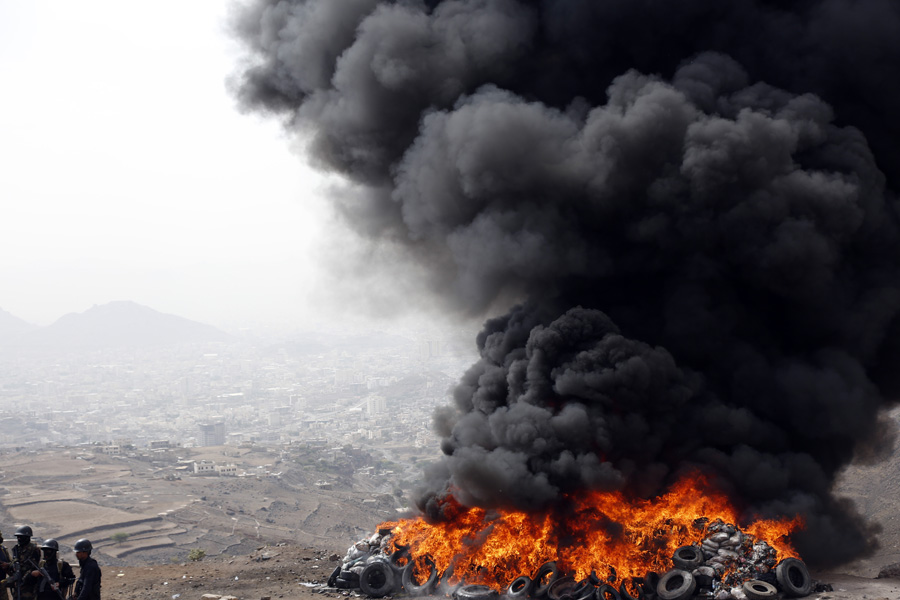 这是6月26日在也门萨那拍摄的毒品销毁现场。