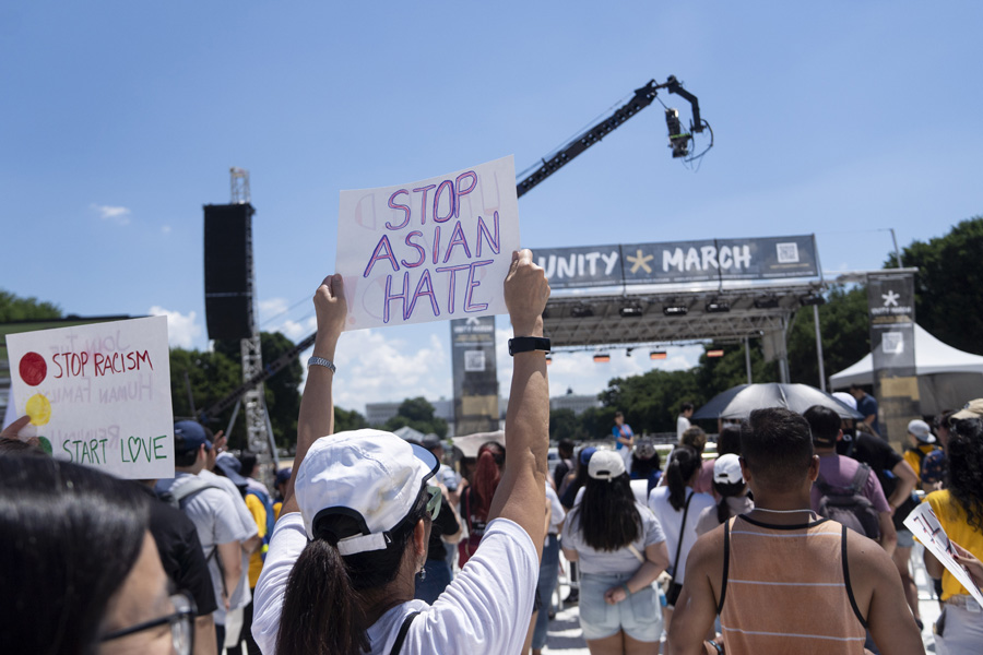 美国亚裔人士6月25日午后在首都华盛顿国家广场举行集会,呼吁停止针对亚裔的仇恨及暴力犯罪行为。