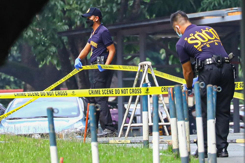 7月24日,菲律宾警察在马尼拉大区奎松市的雅典耀大学枪击事件现场工作。