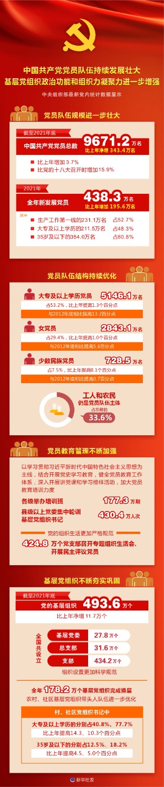 图表:中国共产党党员队伍持续发展壮大 基层党组织政治功能和组织力凝聚力进一步增强
