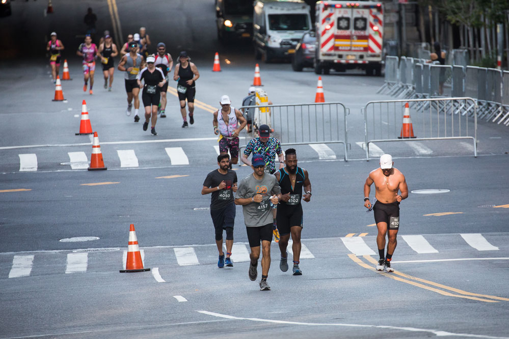 7月24日,人们在美国纽约参加铁人三项比赛,当日的比赛赛程因高温缩短。