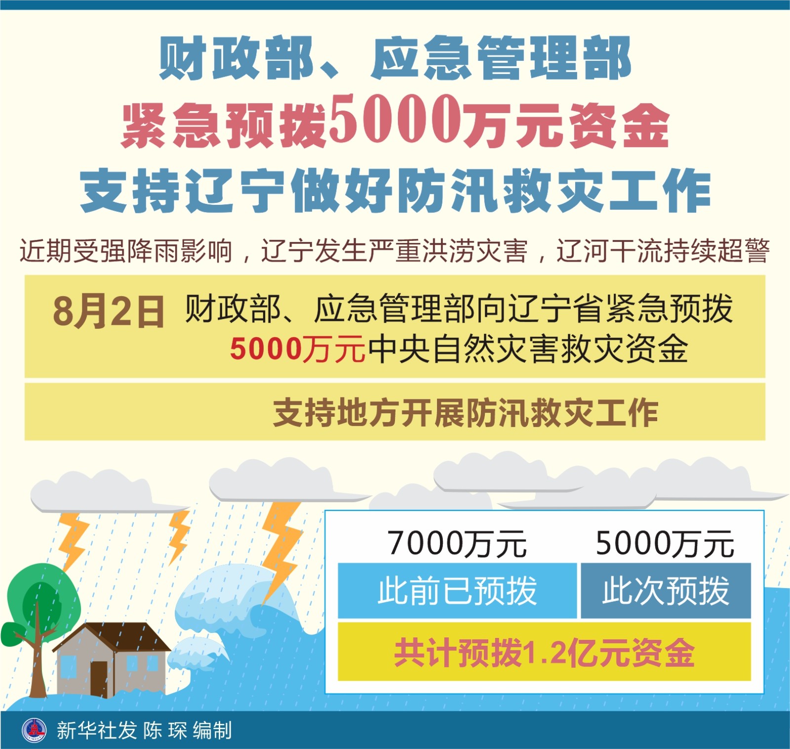 近期受强降雨影响,辽宁发生严重洪涝灾害,辽河干流持续超警。8月2日,财政部、应急管理部向辽宁省紧急预拨5000万元中央自然灾害救灾资金,支持地方开展防汛救灾工作。此前,财政部、应急管理部已预拨辽宁省7000万元防汛抗旱补助资金,加上此次预拨的5000万元,共计预拨1.2亿元资金。