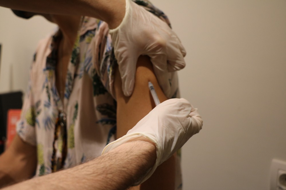 8月3日,一名男子在西班牙巴塞罗那一家诊所内接种猴痘疫苗。