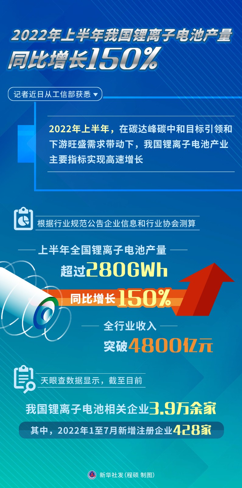 (图表)2022年上半年我国锂离子电池产量同比增长150%