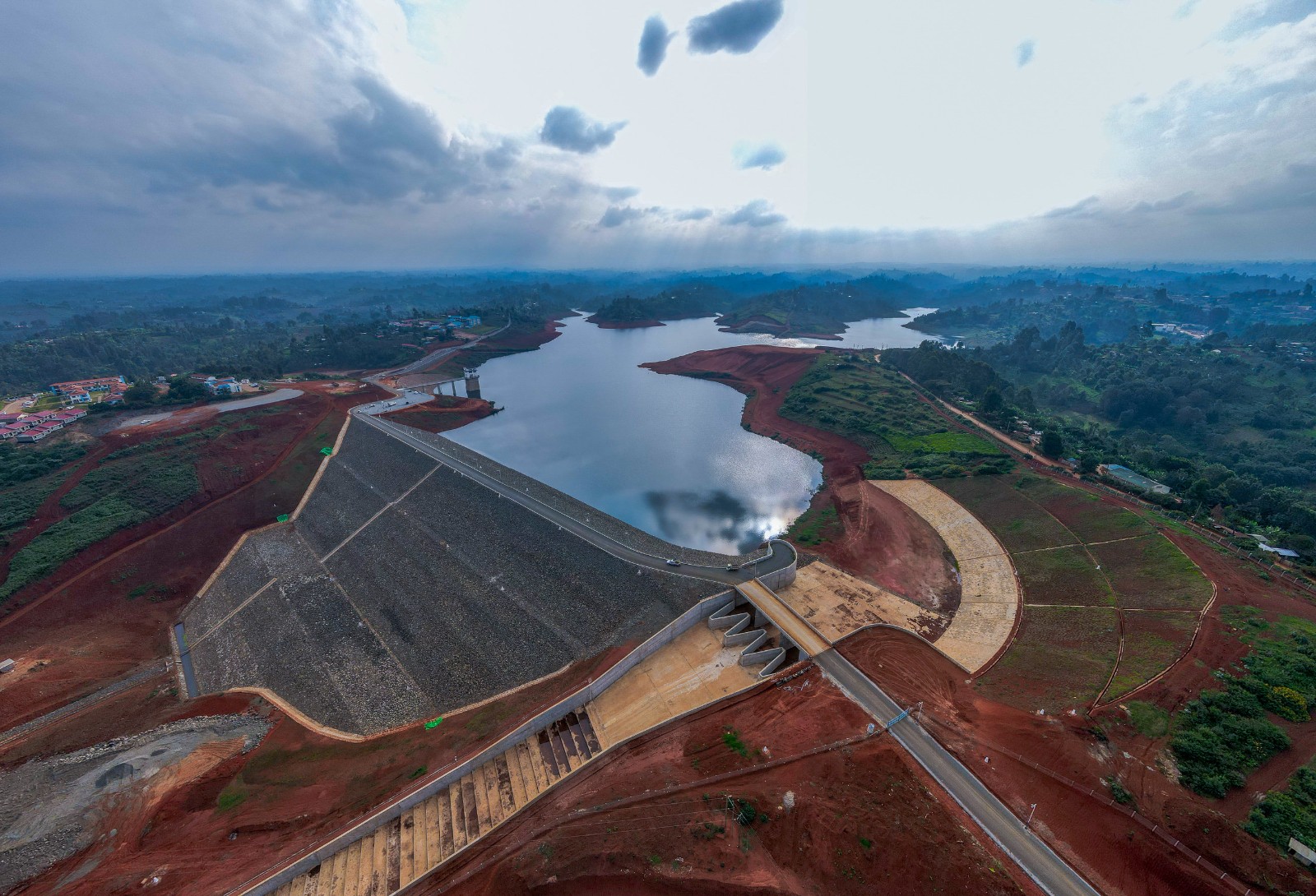 这是8月1日在距肯尼亚内罗毕约75公里的基安布郡拍摄的卡瑞曼纽大坝(航拍照片)。