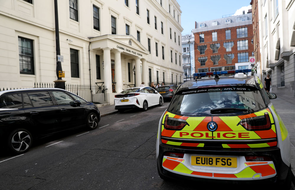 8月8日,在英国伦敦,一辆警车停在警察局门口。
