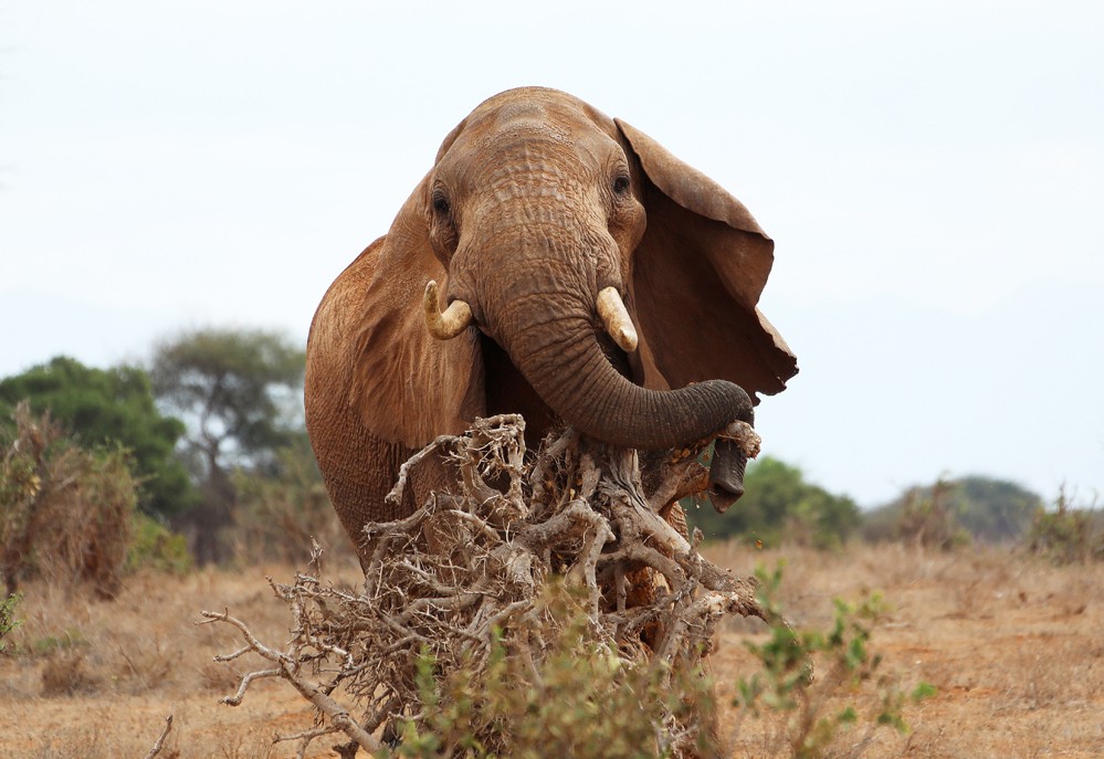 这是7月28日在肯尼亚察沃国家公园拍摄的大象。
