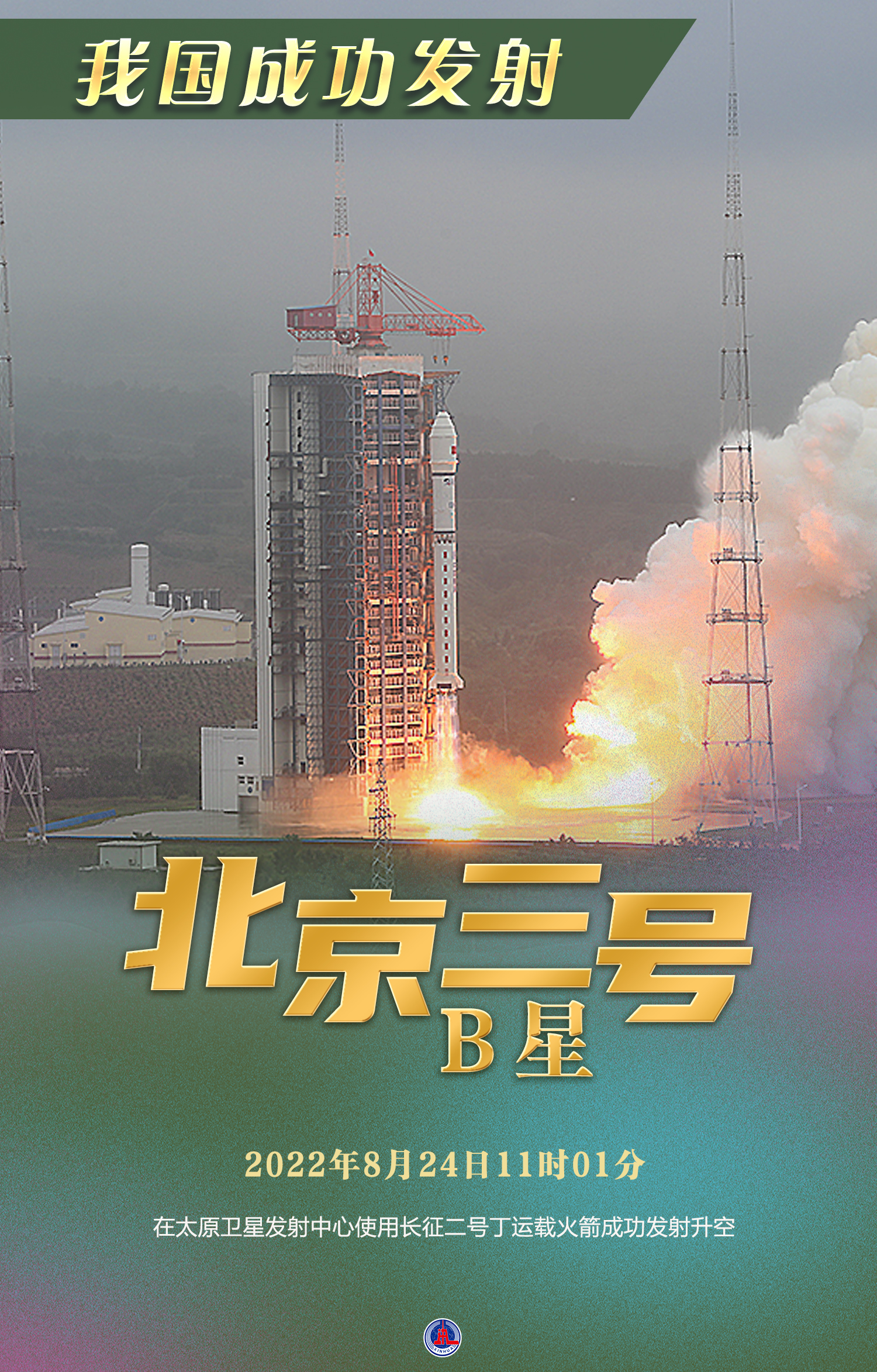 8月24日11时01分,我国在太原卫星发射中心使用长征二号丁运载火箭,成功将北京三号B星发射升空,卫星顺利进入预定轨道,发射任务获得圆满成功。