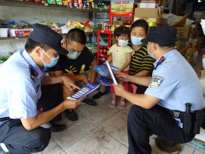 为加大防范网络电信诈骗宣传力度,安徽省芜湖市公安局镜湖分局各派出所成立“反诈宣传”小分队,民警深入商家、企业、社区开展“反诈宣传进万家,守护群众钱袋子”主题宣教活动。图为8月2日,民警向辖区群众宣传防范诈骗知识。