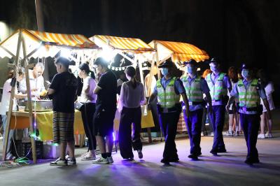 8月9日晚,浙江省舟山市公安局普陀区分局东极派出所民警结合夏季治安打击整治“百日行动”,深入辖区夜市、民宿等场所开展巡逻执勤,护航海岛夜经济发展,守护游客平安。