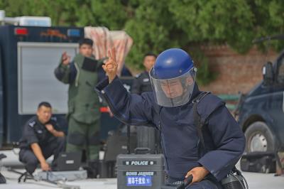图为8月22日,涉爆处置小组特警在进行爆炸物处置演练。