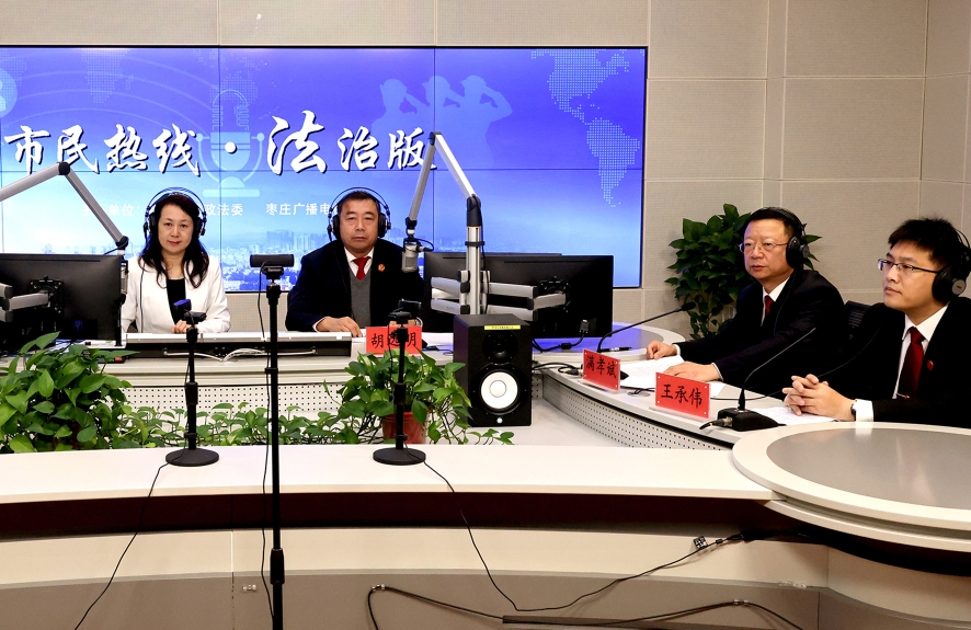 10月27日,山东省枣庄市市中区人民法院法官走进枣庄广播电视台直播间,参加由枣庄市委政法委和枣庄广播电视台联合主办的《市民热线•法治版》直播节目,开展法治宣传并现场解答听众提问。