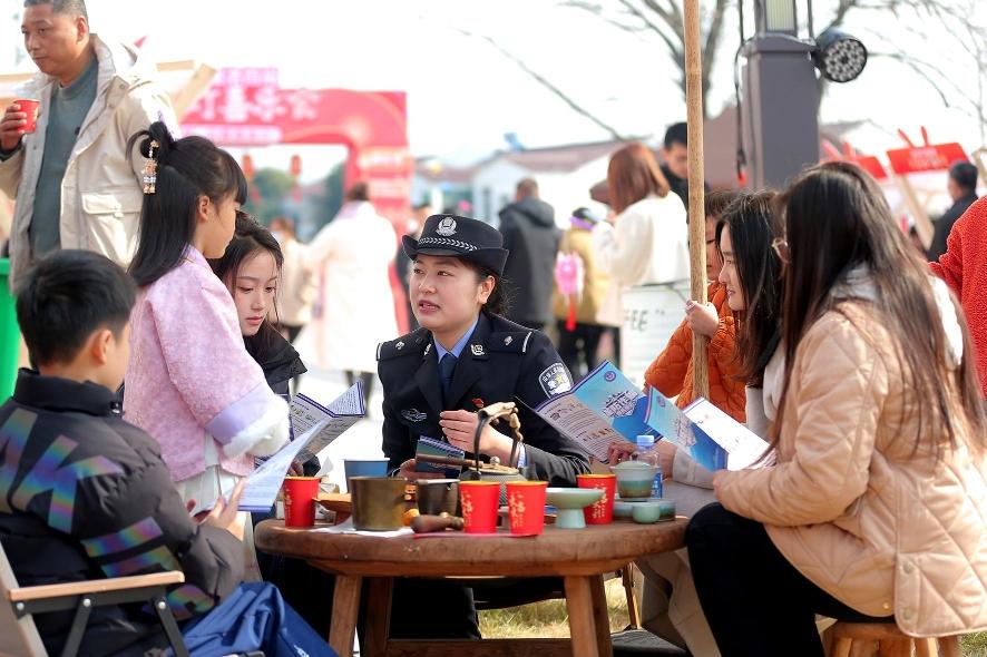 2月4日,江苏省宜兴市公安局反诈中心联合新街派出所在潼渚元宵花灯喜乐会上采用“围炉煮茶”形式开展反诈宣传。