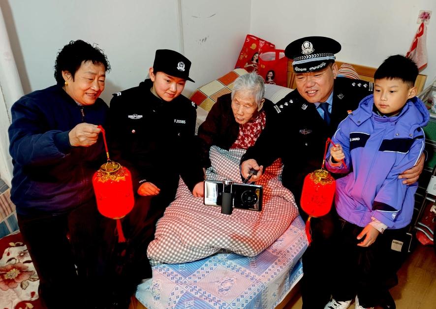 2月5日,山东省枣庄市公安局峄城分局坛山派出所民警来到辖区立新社区,看望外出务工人员留守老人和子女,并通过视频通话的方式帮助他们与亲人团圆过节。