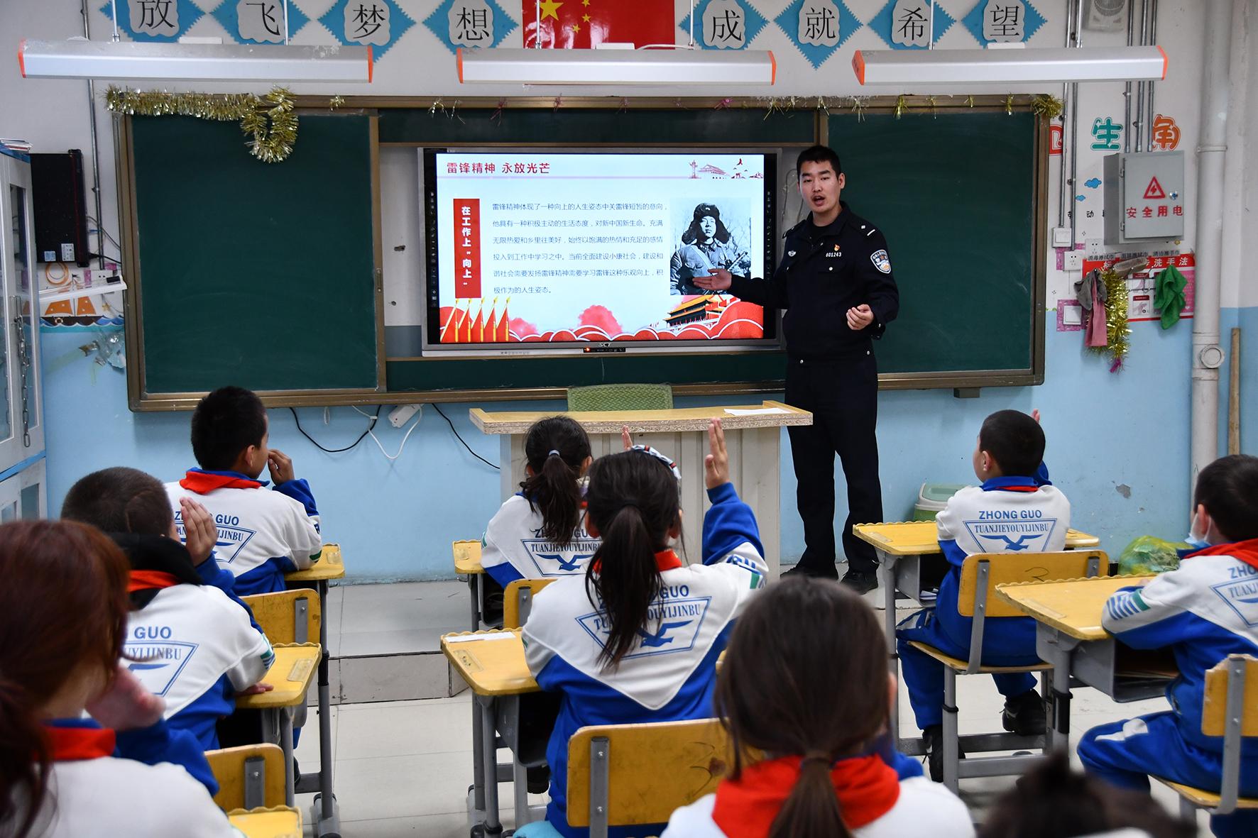 3月1日,甘肃省临泽县公安局民辅警走进辖区幼儿园,向小朋友们讲述雷锋精神的时代内涵和学习雷锋精神的重要意义,让雷锋精神代代传承。