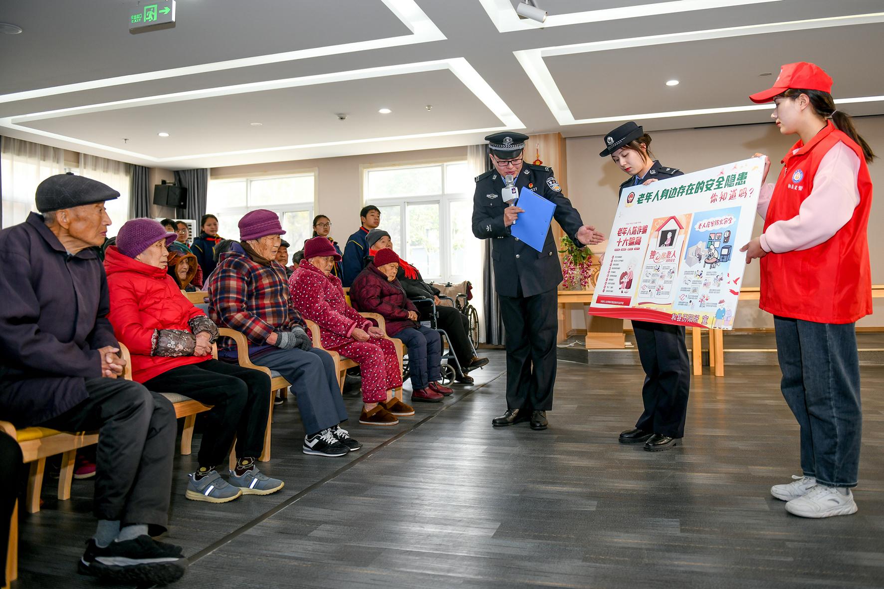 图为民警通过“情景剧”的形式向老人开展养老反诈宣传。