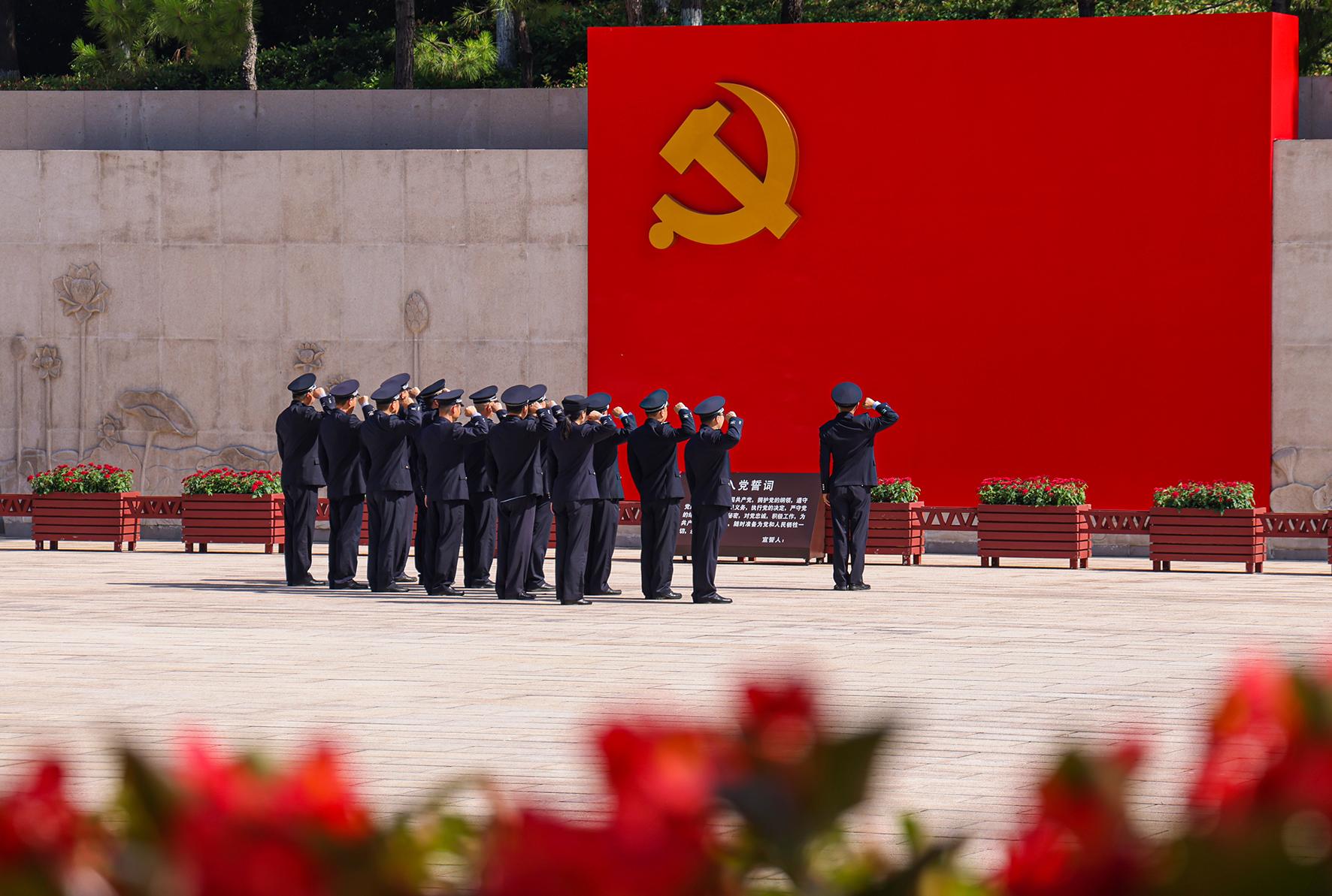 6月28日,浙江省嘉兴市公安局南湖区分局七一派出所组织党员民警到南湖革命纪念馆宣誓墙前,重温入党誓词,牢记初心使命,坚决扛起“红船护旗手”的责任和担当。