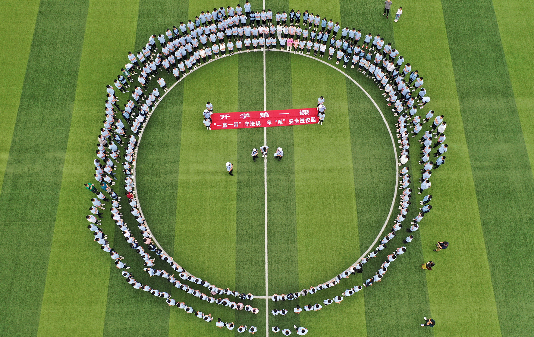 8月29日,在安徽省马鞍山市和县第二中学,和县公安局民警向高一新生开展“开学第一课” 普法宣传活动。