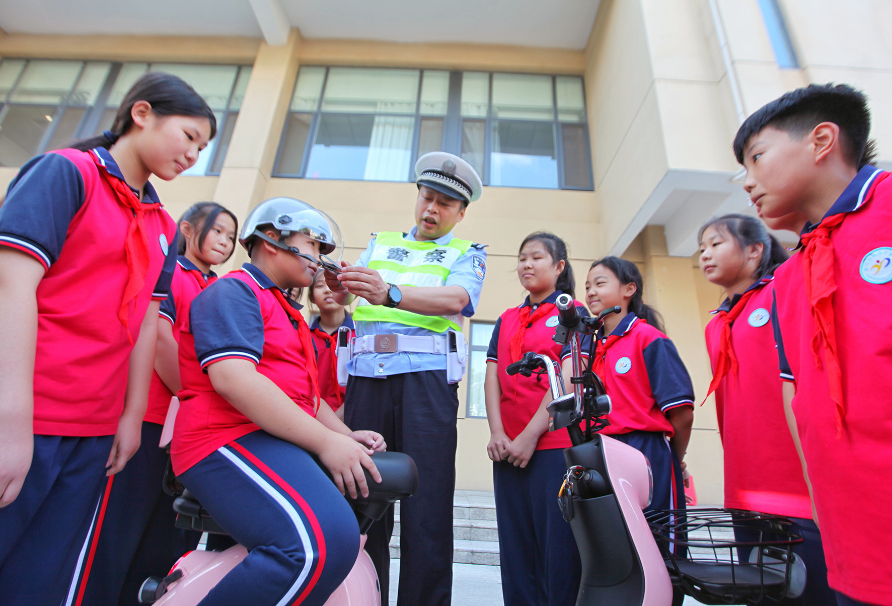 8月28日,安徽省芜湖市公安局交警支队镜湖大队民警,走进芜湖市第三中学开展“一盔一带”等交通安全知识宣讲进校园活动。