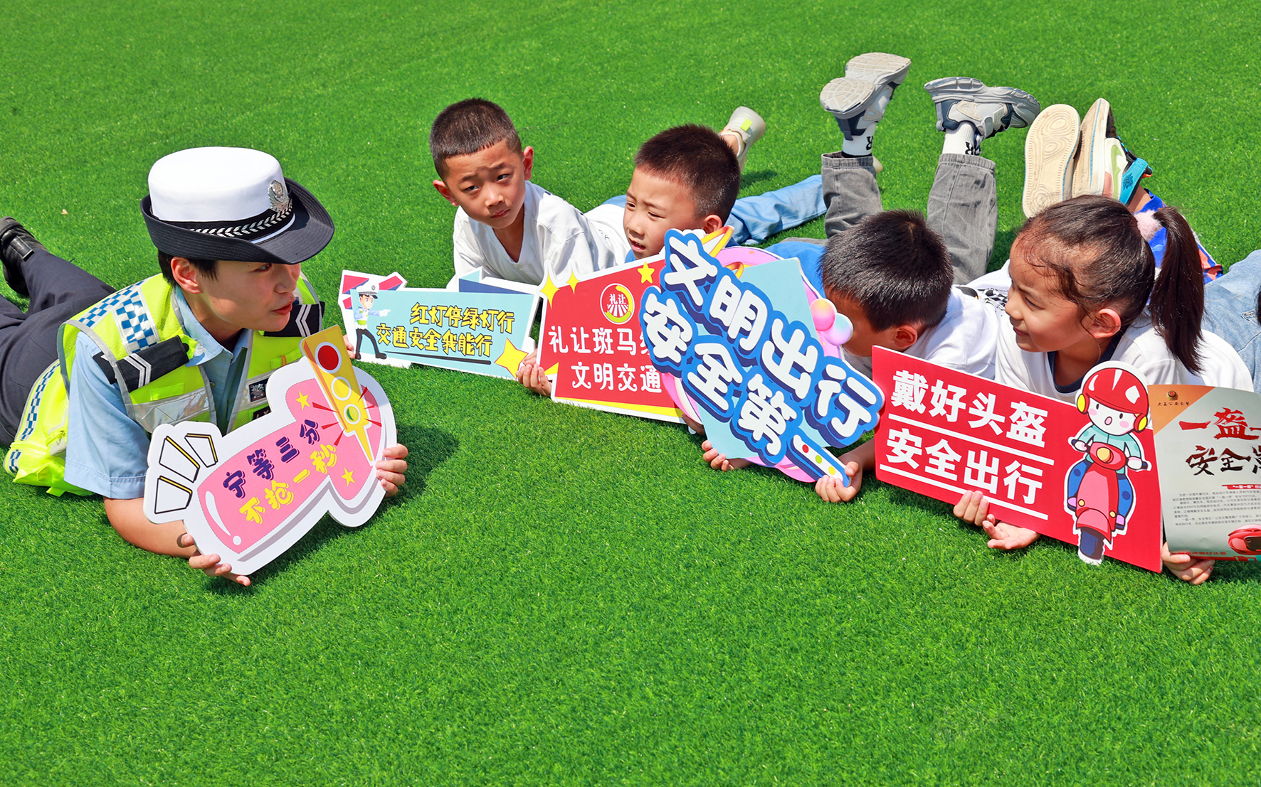 8月30日,陕西省大荔县公安局交管大队城区中队组织民警深入辖区幼儿园,为孩子们上好“安全第一课”。