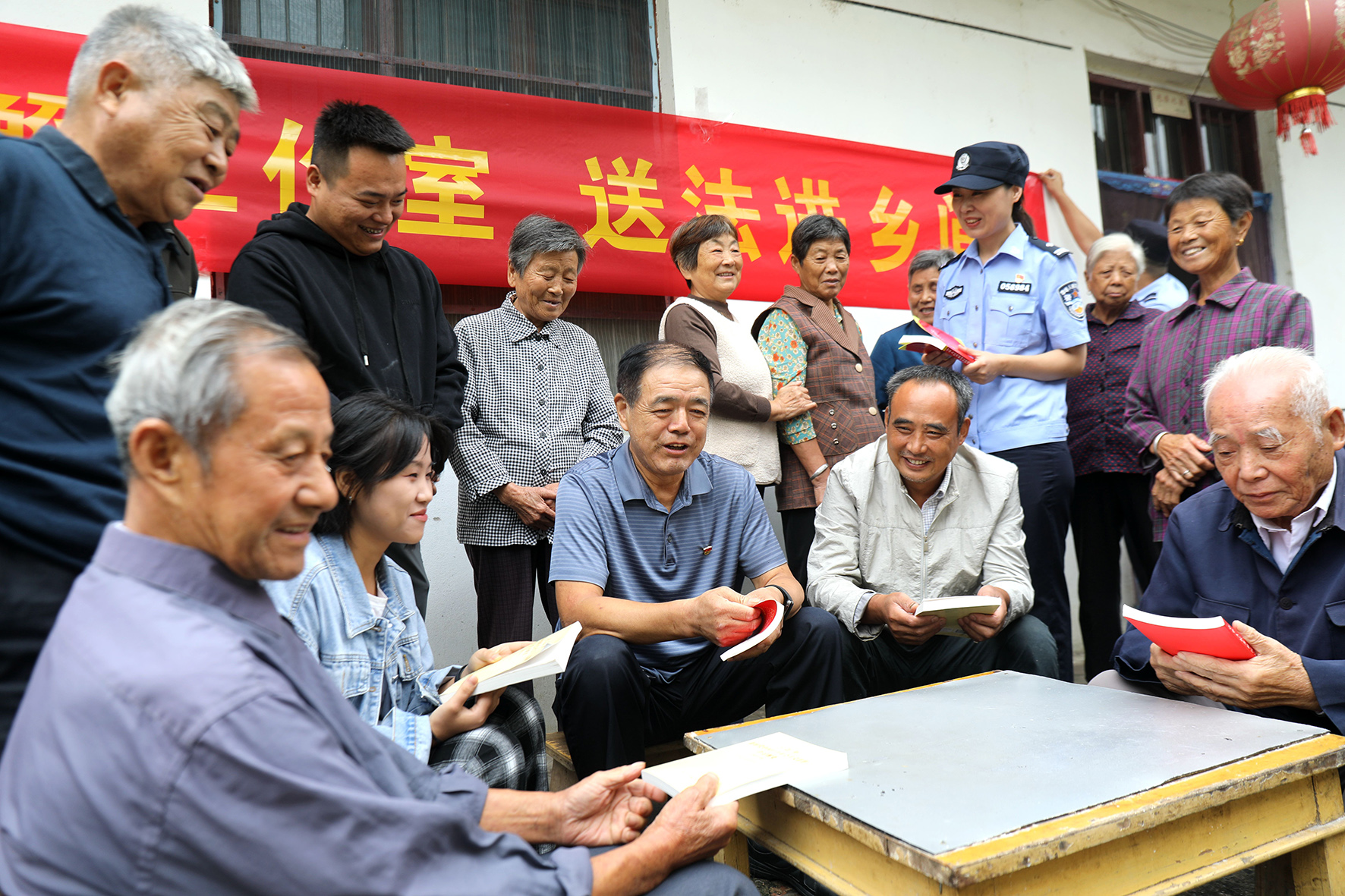 9月22日,安徽省舒城县公安局杭埠派出所“老吴调解工作室”吴修富携同驻村民警来到辖区河南村,向村民开展法治宣传。今年66岁的吴修富是一名退休民警,被派出所特聘为调解工作室调解员,负责派出所疑难复杂矛盾纠纷调处。“老吴调解工作室”是全县首个以个人名义命名的警民联调室,遇事开展调解空闲时间下乡普法。