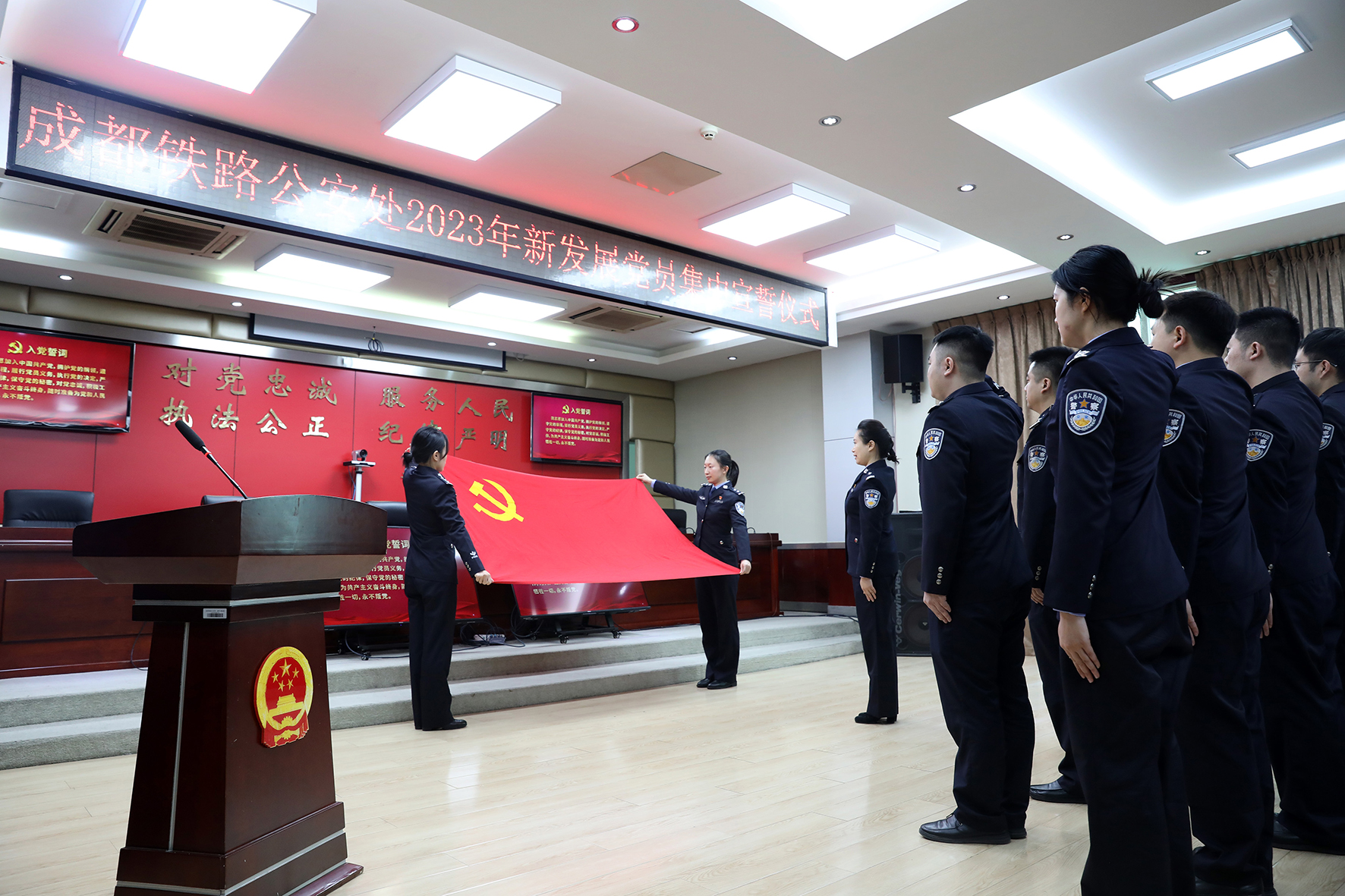 11月24日,成都铁路公安局成都公安处举行2023年新发展党员集中宣誓仪式。