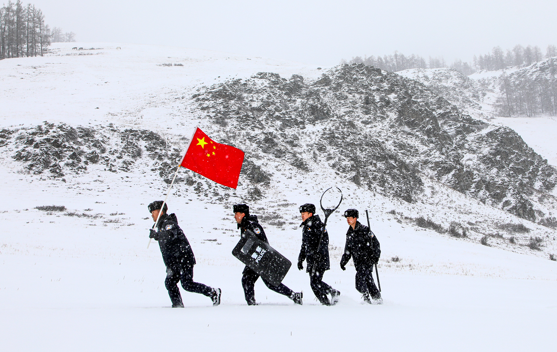 11月25日,驻守在祖国边陲的新疆阿勒泰边境管理支队喀纳斯边境派出所的移民管理警察克服风雪天气,深入辖区重要山口要道、无人区、冰河等边境前沿进行巡逻踏查,确保边境辖区安全稳定。