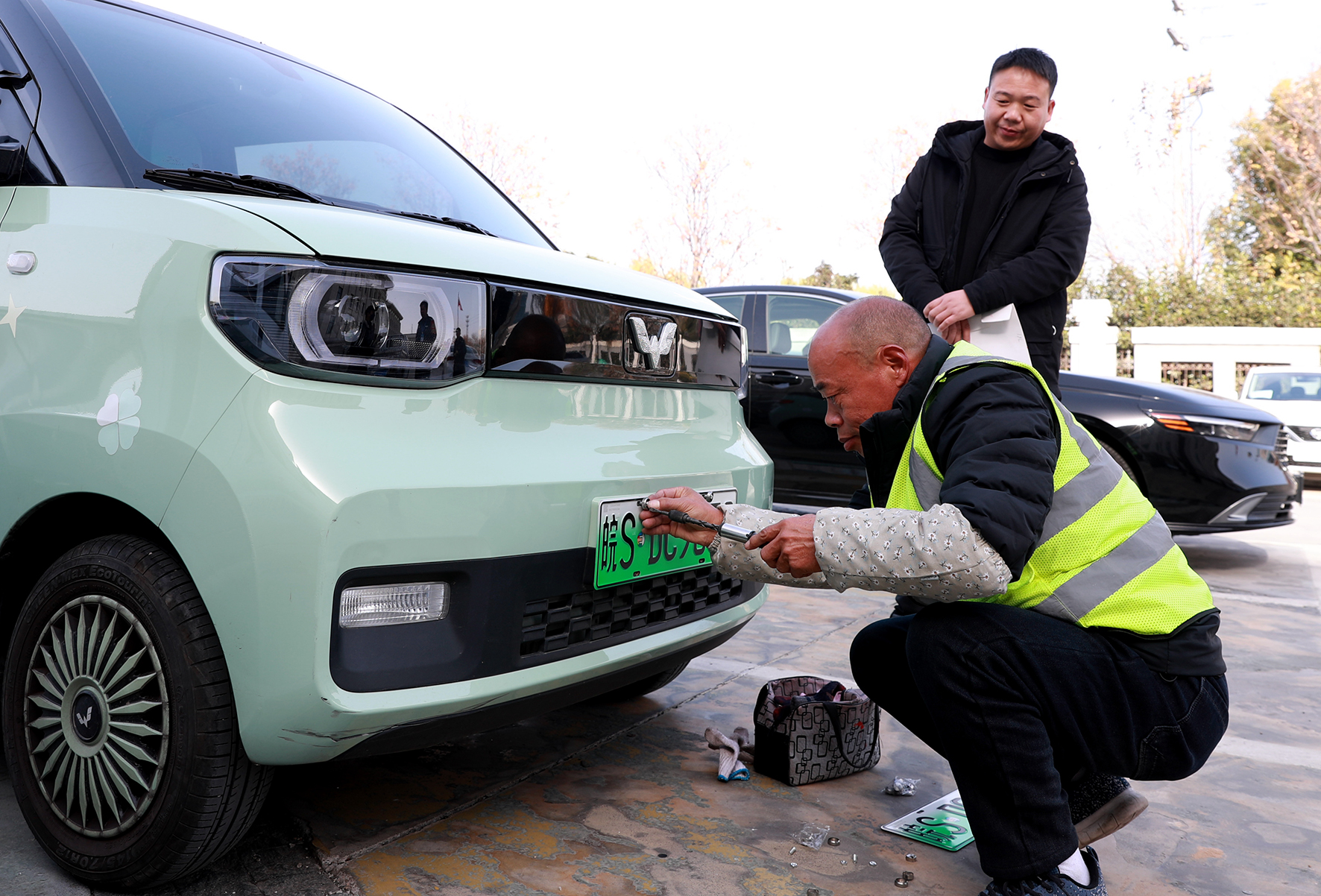图三:工作人员为车主免费安装号牌。