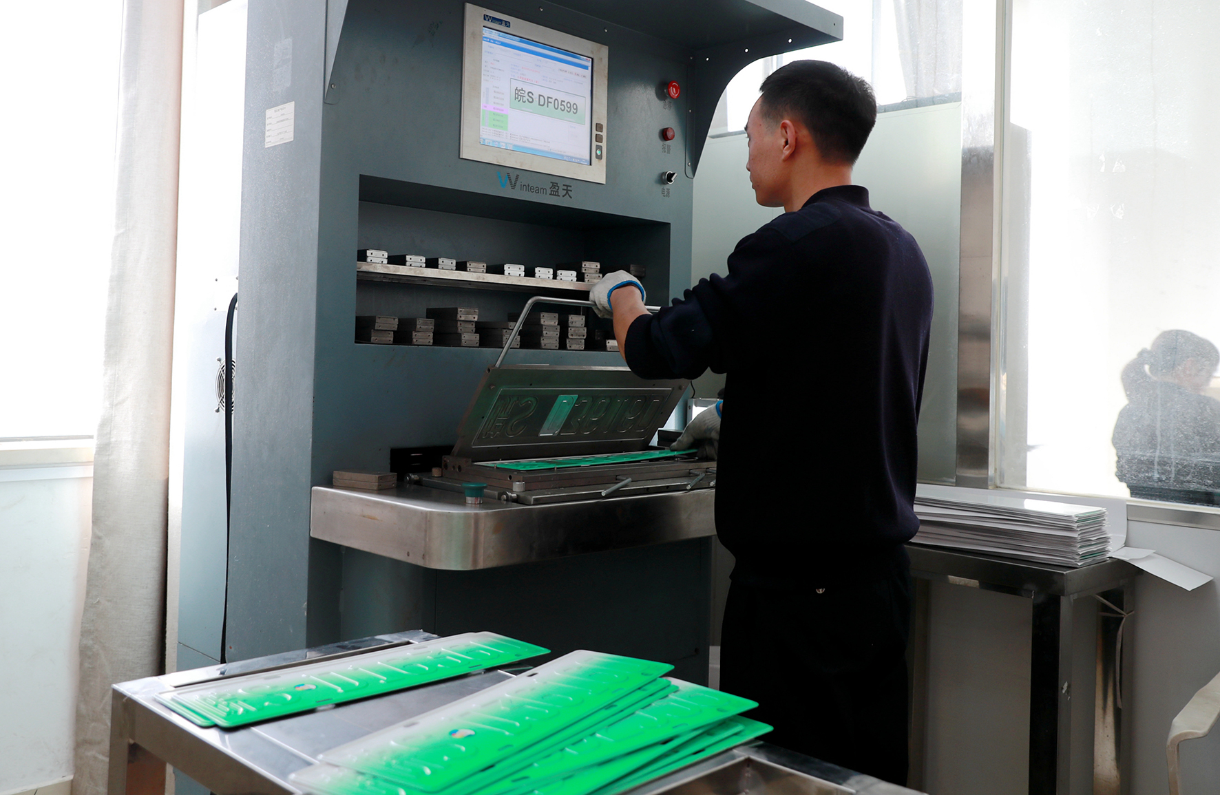 图一:12月6日,现场制作新能源号牌。