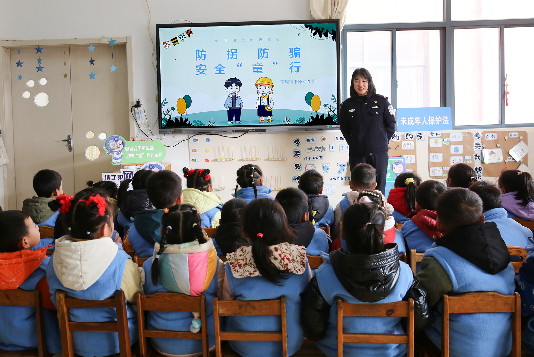 12月6日,江苏省如皋市公安局下原派出所民警来到辖区下原幼儿园,向孩子们讲解防拐骗安全知识。