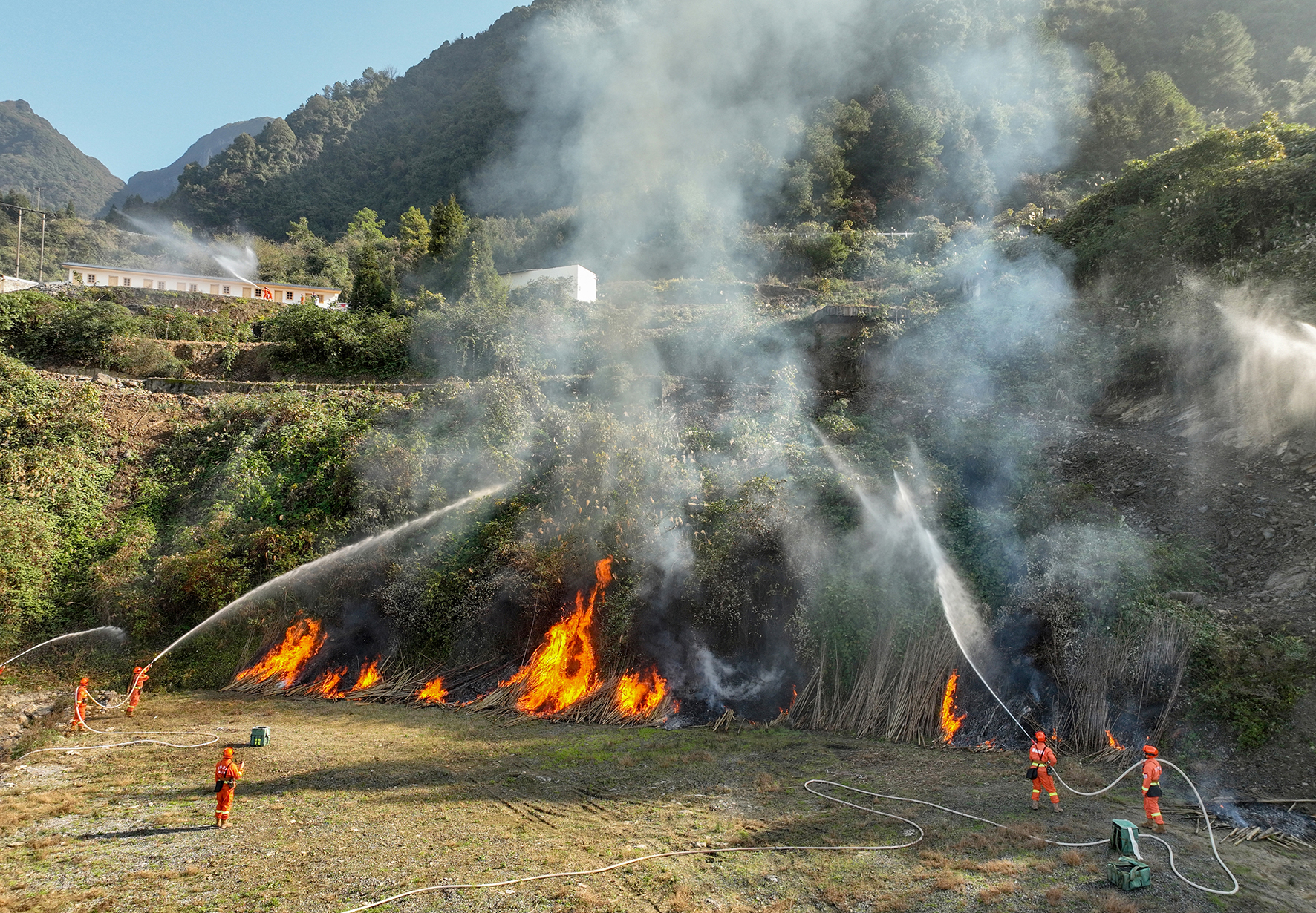12月7日,四川省华蓥市组织森林专业扑火队和各镇村的应急队员,在阳和镇偏岩子村开展今冬明春森林防火应急实战演练,以“练”促防、防患未“燃”。