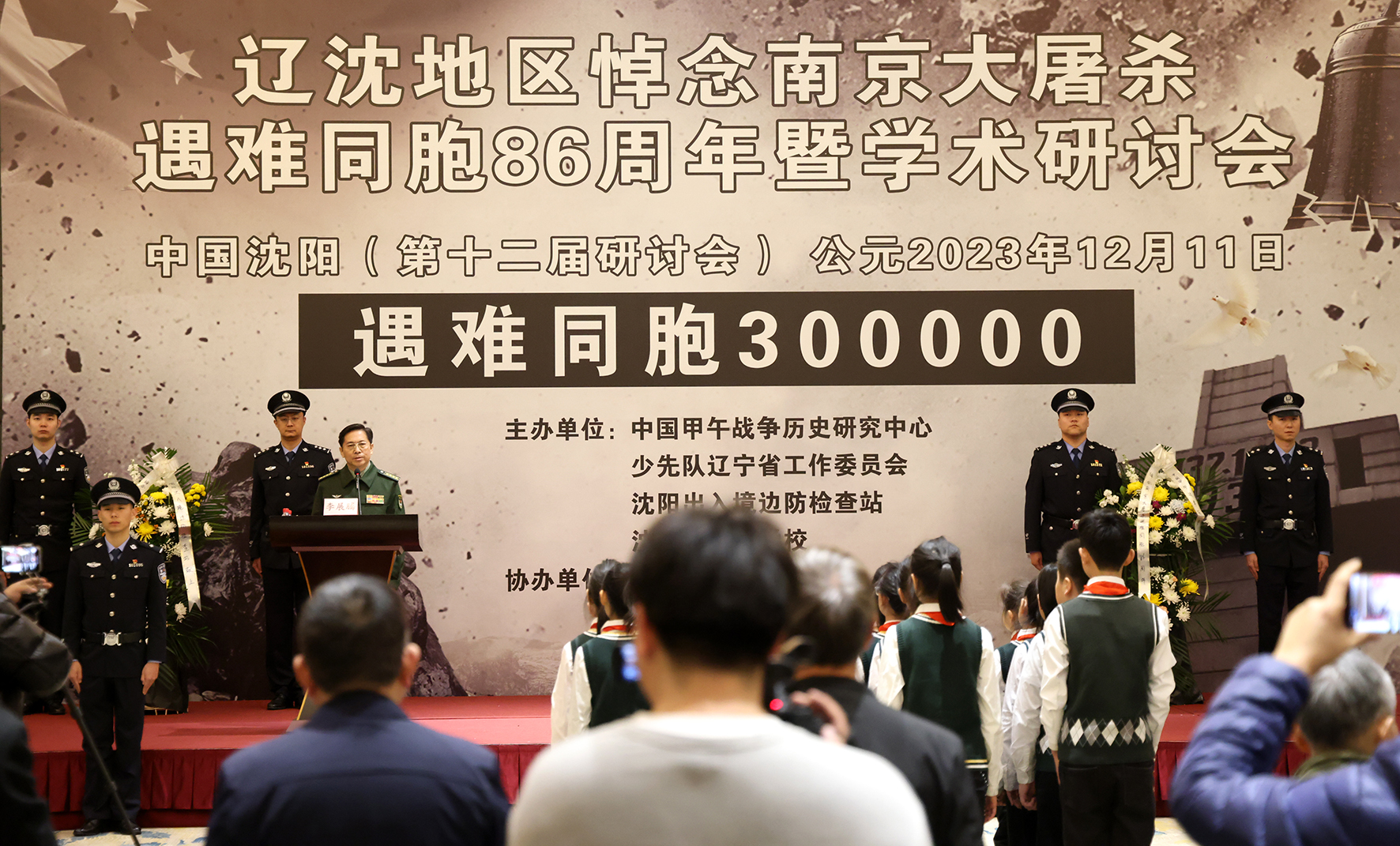 在第十个南京大屠杀死难者国家公祭日到来之际,12月11日,由中国甲午战争历史研究中心、辽宁沈阳出入境边防检查站等单位联合举办的辽沈地区悼念南京大屠杀遇难同胞86周年公祭暨学术研讨会,在东北大学国际学术交流中心举行。来自社会各界的120余名代表参加仪式。