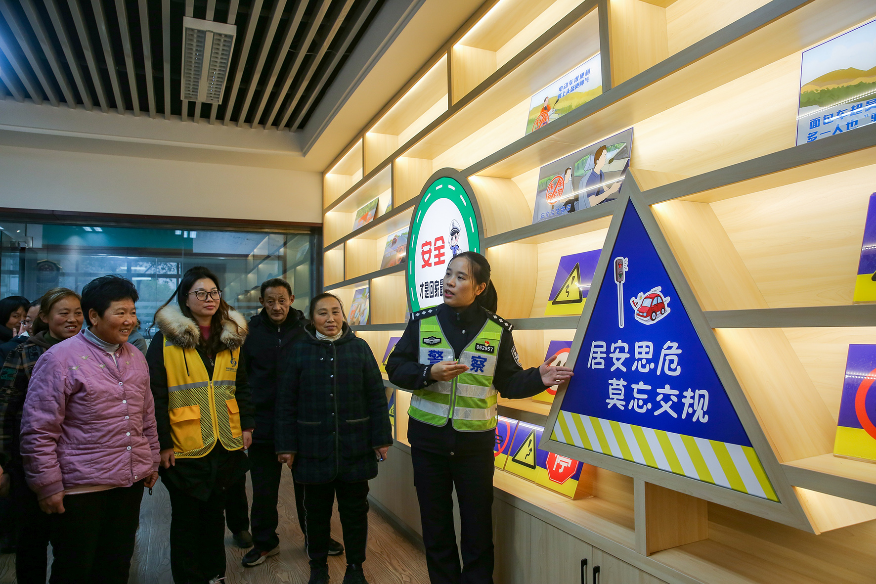12月15日,江苏省如皋市城南街道联合高新区交警中队走进建设社区交通宣传站,引导农村群众自觉抵制交通违法行为,提高农村群众的交通安全意识、全力做好冬季农村道路交通管理。