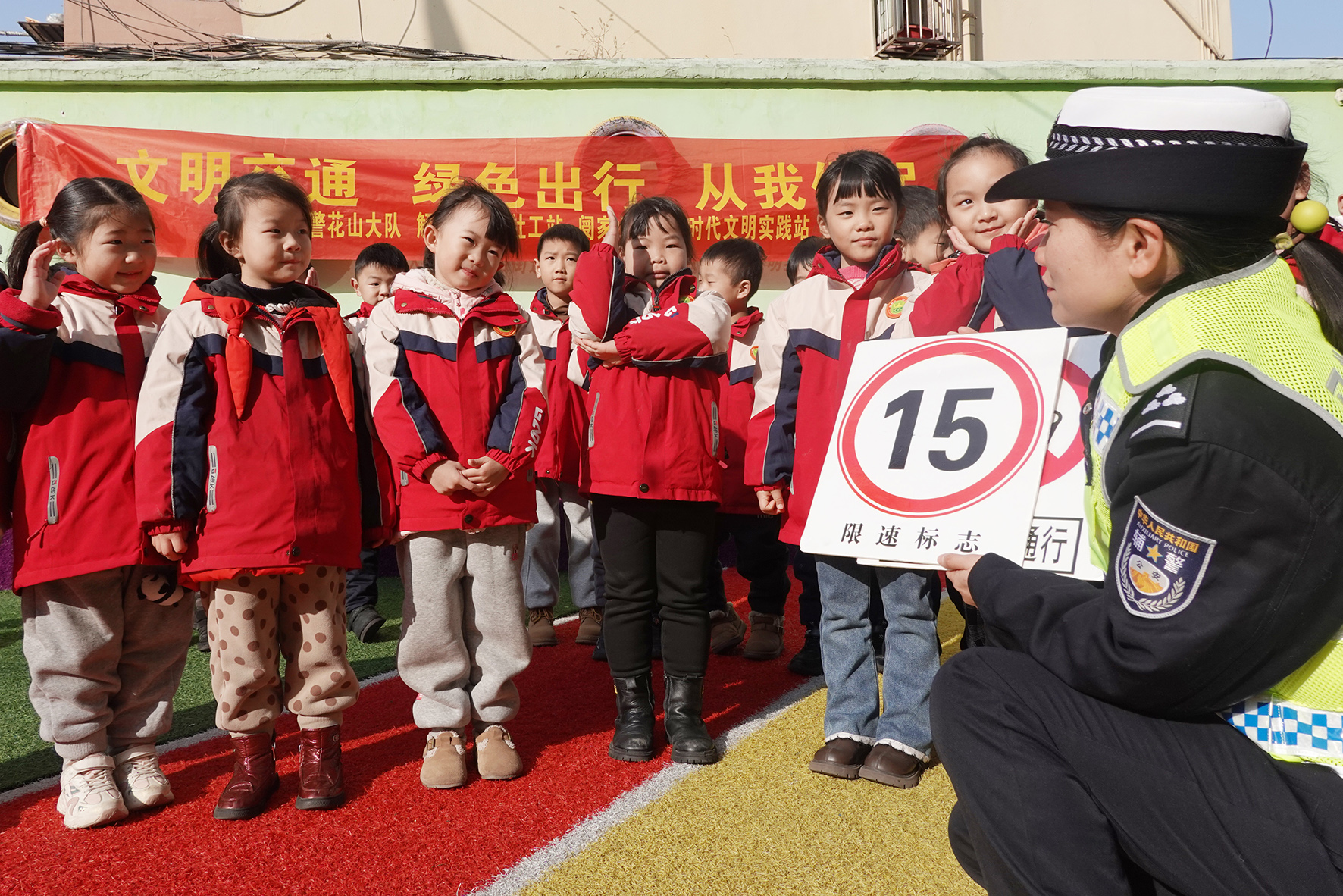 1月11日,安徽省马鞍山市花山区解放路街道阌家山社区新时代文明实践站联合花山交警大队、解放路街道社工站,在花果山幼儿园开展“文明交通 绿色出行 从我做起”交通安全主题活动。